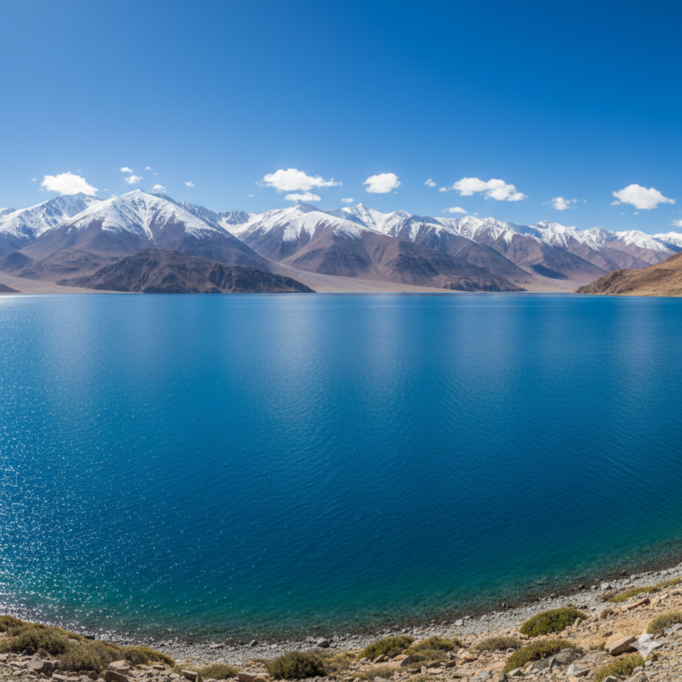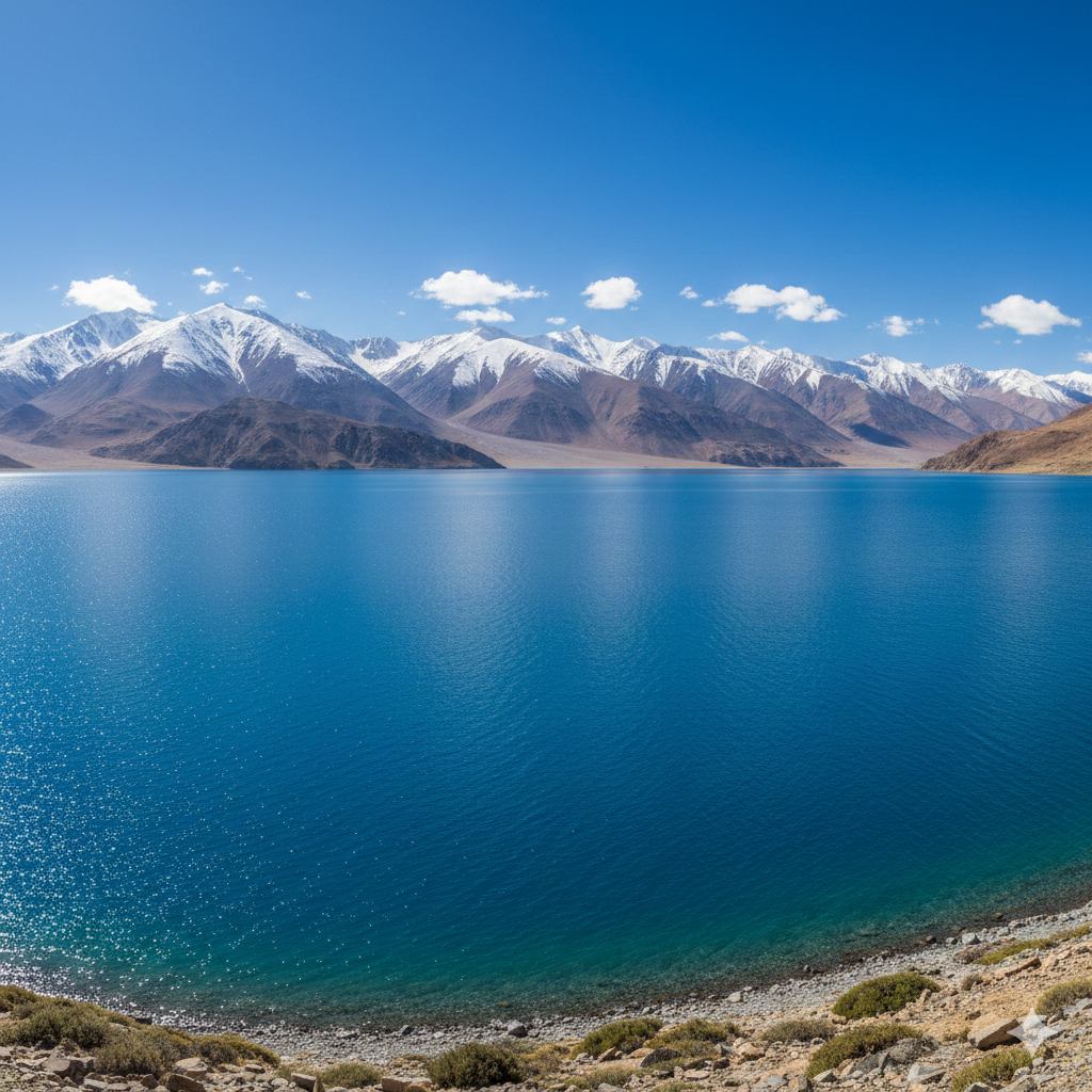Pangong Tso: Famous for its changing colors and crystal-clear blue waters.