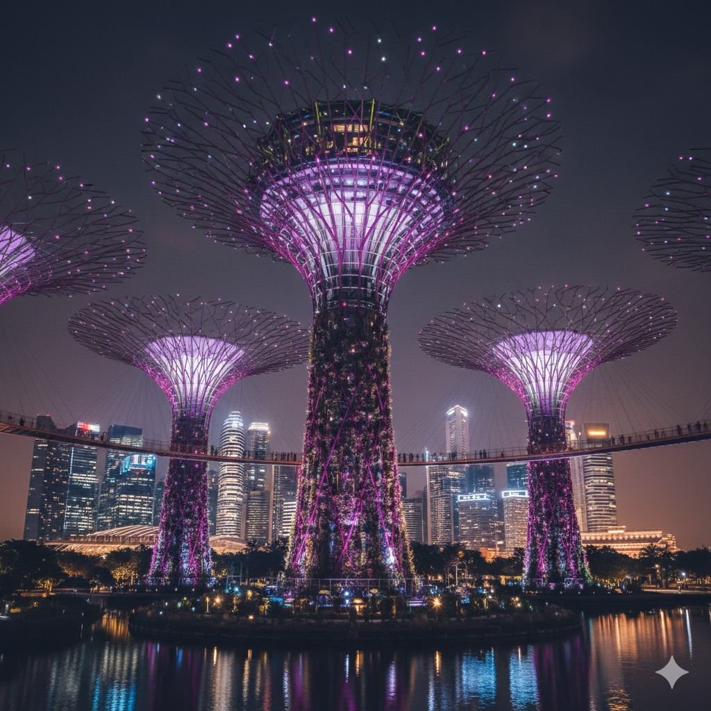 Explore the Gardens by the Bay, Universal Studios, and the cultural streets of Kuala Lumpur.